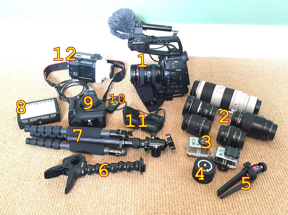This is my workhorse camera (replacing an old Sony Z7 I used for a long time). The Z7 was actually nicer to use, but this one lets me use all my Canon lenses. The main lens I use is 24-105mm. And I have a Sennheiser shotgun mike attached so the sound I capture is of the best quality.