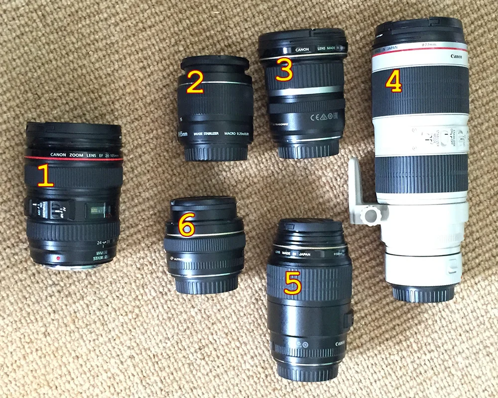 2. Various Canon lenses